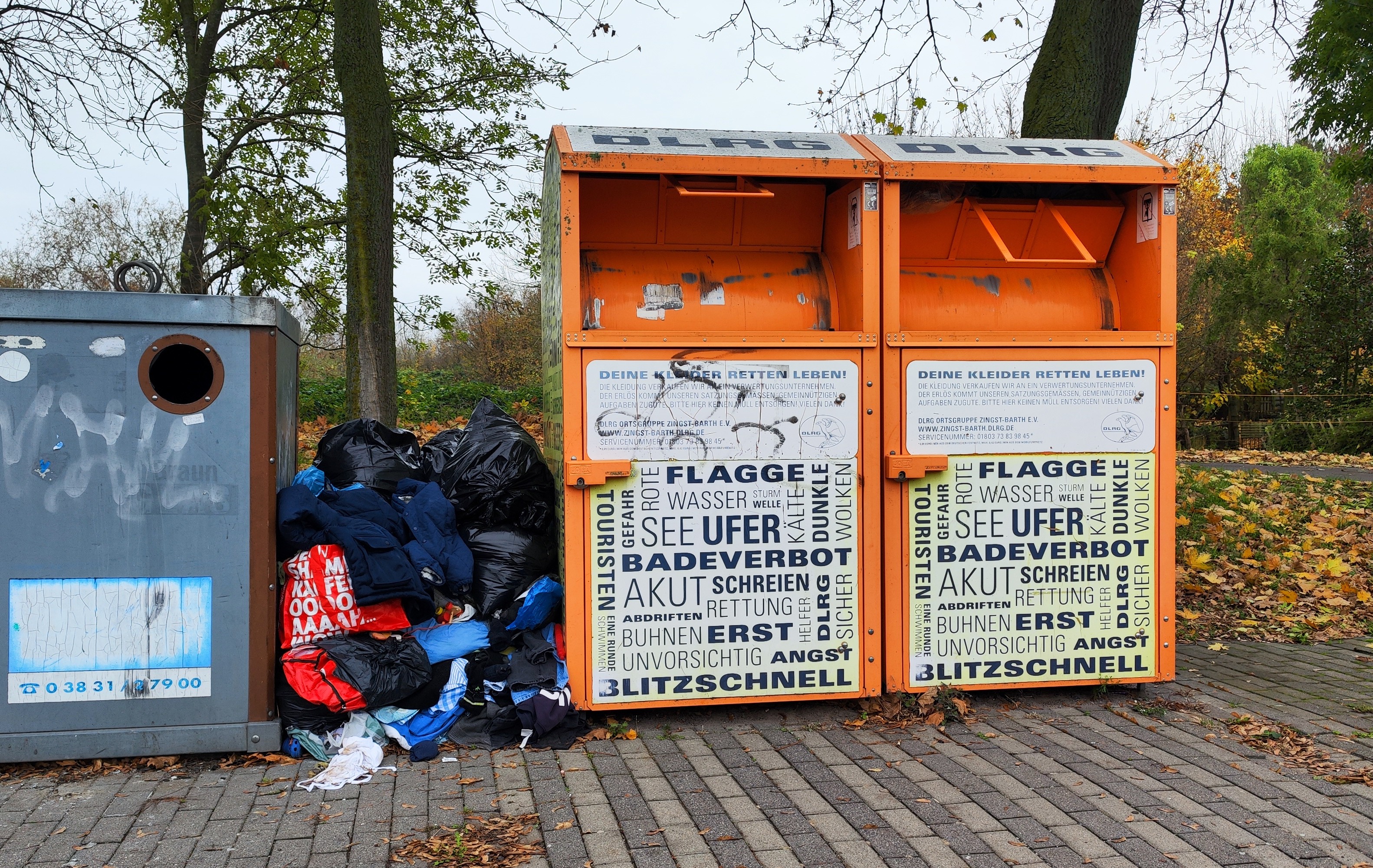 Barth, November 2024 – In den vergangenen Tagen kam es im Stadtgebiet Barth zu erheblichen Problemen bei der Entsorgung von Alttextilien. Die Altkleidercontainer der Firma SOEX Gruppe, gekennzeichnet durch die Schriftzüge der Deutschen Lebens-Rettungs-Gesellschaft (DLRG), waren überfüllt, und es wurden zunehmend Ablagerungen rund um die Container festgestellt. Diese Situation hat nicht nur das Stadtbild beeinträchtigt, sondern auch hygienische Probleme mit sich gebracht.