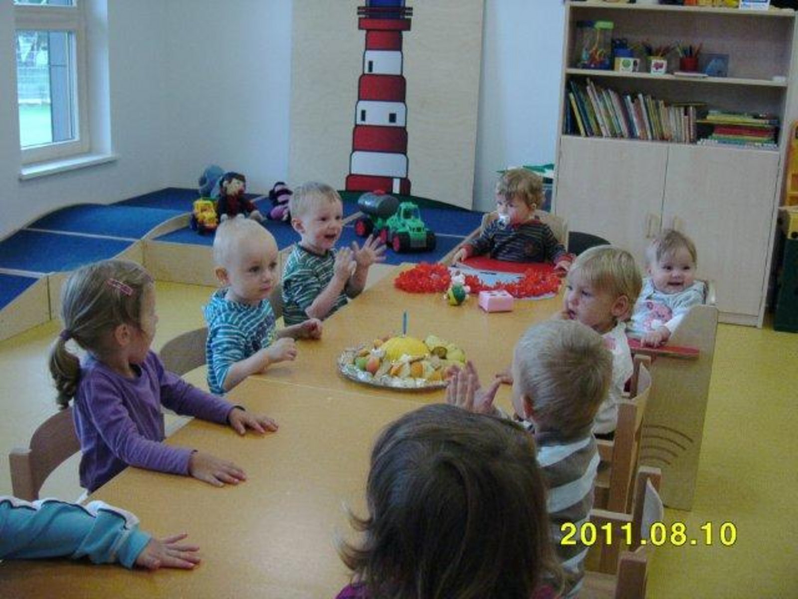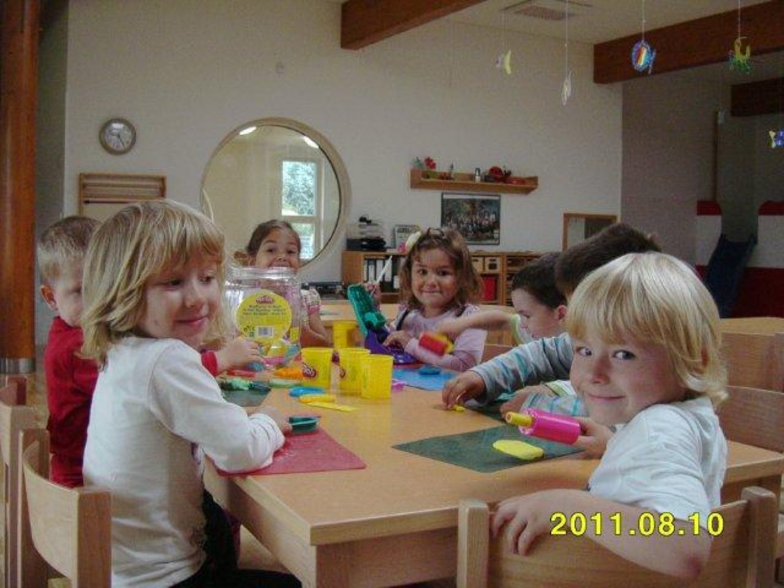In unserem neuen Haus können sich Kinder ab dem 3. Lebensmonat bis zum 10. Lebensjahr wohlfühlen. Wir haben 12 Krippenplätze, 32 Kindergartenplätze und 15 Hortplätze zur Verfügung. Die Kinder werden durch Fachpersonal betreut.