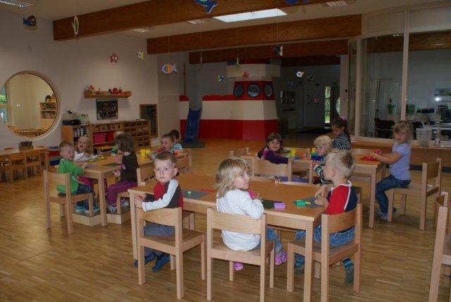 Die Kinder können entsprechend ihren Wünschen und Bedürfnissen selbst entscheiden, wo sie sich einen großen Teil des Tages aufhalten. Sie können wählen zwischen Mehrzweck- und Bewegungsraum, Gruppenraum, Funktionsecken mit Bauen und Konstruieren, Farben, Musik, Messen, Wiegen, Experimentieren oder Gesellschaftsspielen.