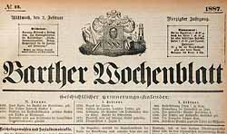Natürlich wurde auch die erste Barther Zeitung seit ihrem Erscheinen 1848, wenn auch nicht immer vollständig, archiviert. Als Beispiel sei hier ein Auszug aus einer Barther Zeitung mit den Ergebnissen der Reichstagswahlen von 1871 bis 1884 gezeigt: